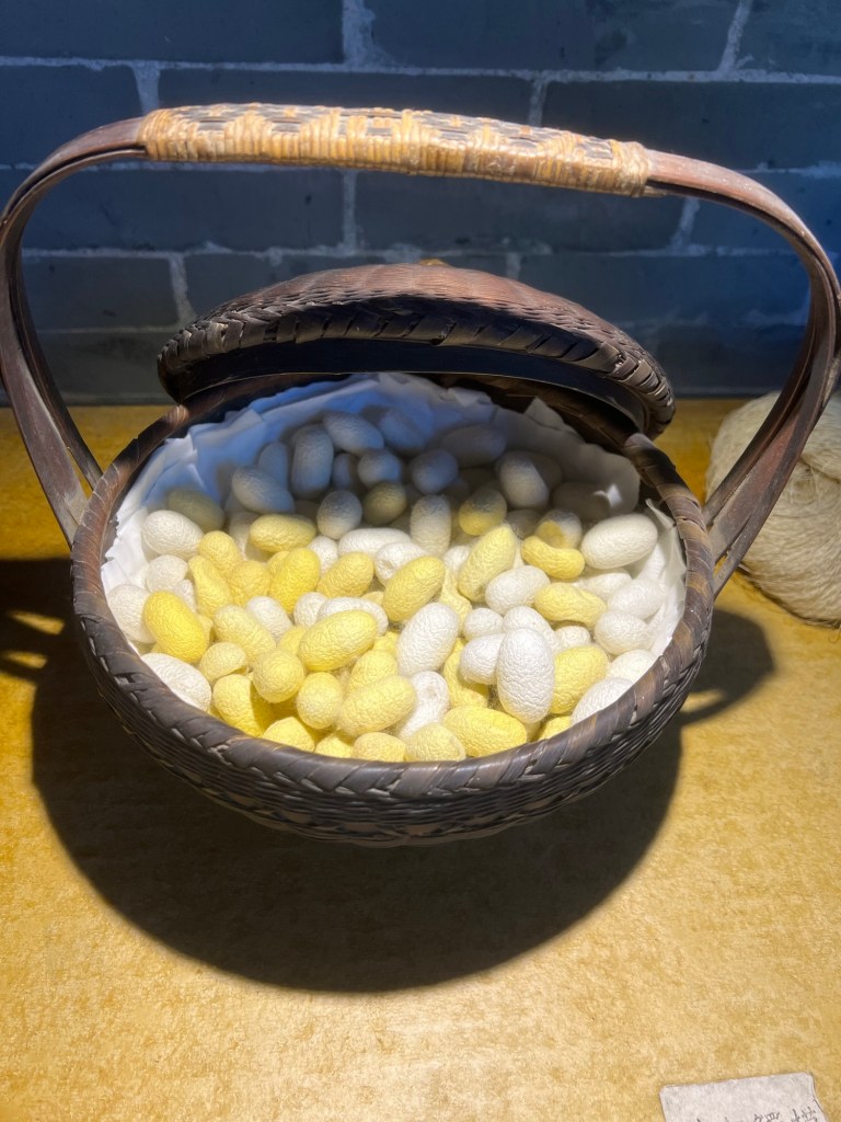 The museum is home to a special exhibition of textiles at the moment, and it is beautifully curated. There are examples of original fibres at the start and as we ponder about what they are, a very helpful young man with excellent English comes over and stays with us to give us a really wonderful tour and explanation. ‘This is hemp’ the first clothes were made from this.
