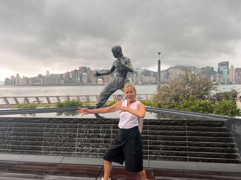 We have one last visit to make before heading home to China, walking back down Canton Road, we are heading for the Avenue of Stars where there is a decking right along the harbourside with film star hand impressions, we want to find Wong Kar Wei and Michelle Yeoh. Rob has been determined to watch Wong Kar Wei’s iconic film ‘In the mood for Love’ and Michelle Yeoh is our claim to fame – she was at University with us.