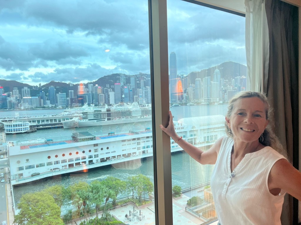 We wake up to the typhoon, we cannot even see across the harbour anymore and a fierce gale is blowing veils of heavy rain at the windows of our room. We have done so much yesterday we are not too disappointed. Between the hotel towers there is a coffee shop and unsuccessfully trying to jump massive puddles we head there and plan our day over coffee and croissants. One of the unexpected bonuses about being in Hong Kong is the lack of media restriction; in China we have been experiencing a powerful firewall, and now we can access all the things that have been so difficult, we can Google and Whatsapp and Facebook and Instagram and watch and listen to any BBC channel – which is actually quite a treat.