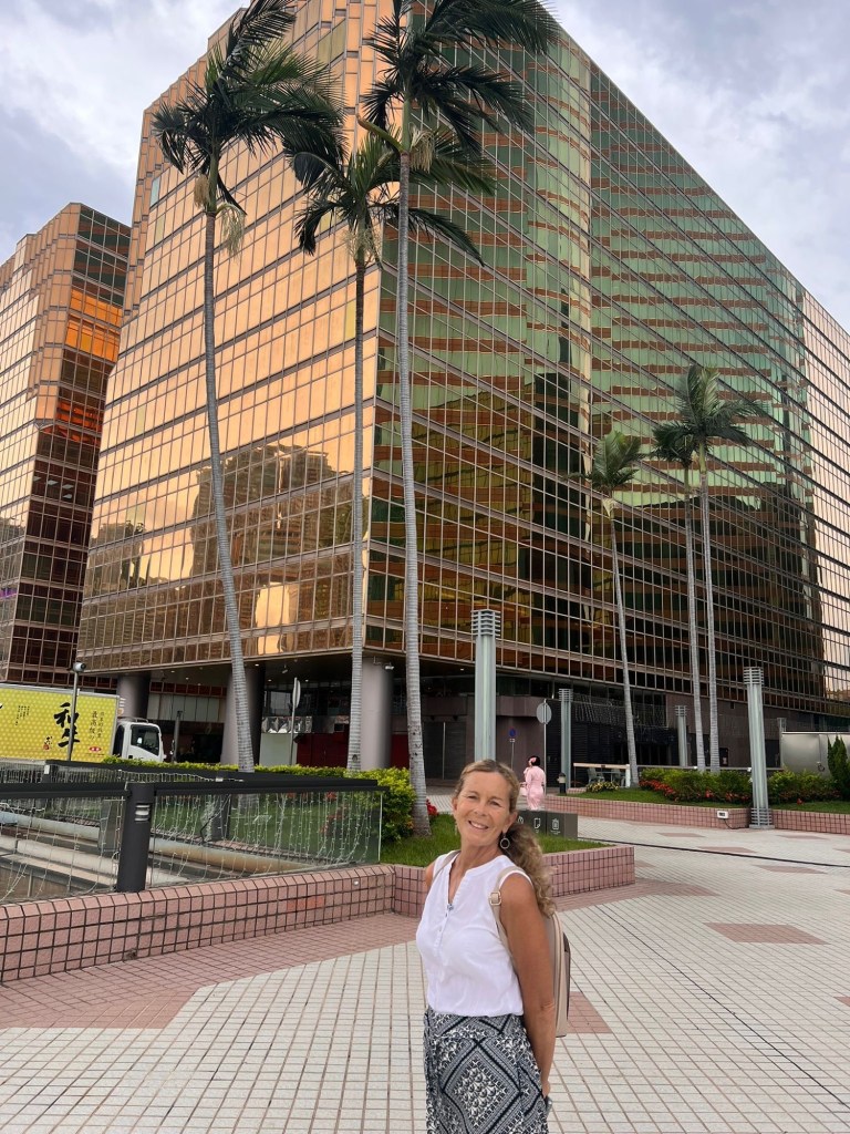 We are up early and calling a Didi to take us to the port- we have return ferry tickets to Hong Kong. There has been a typhoon warning coming in on our phones Gov 1000 ‘Warning Typhoon…. (whatever she is called) is arriving from….’, we are quietly optimistic that typhoon (whatever she is called ), may not be too strong because as we drive along the coast we can see almost the entire length of the bridge to Hong Kong and the sea below looks like a mill pond, still and serene, it’ll be fine! However, we are soon stepping into a second Didi, the ferries are all cancelled. Undeterred, we are heading to the HMZ Port a little further on to catch a bus, I keep looking out of the window as we speed over the bridge – the sea and sky all look so calm, what is the problem?